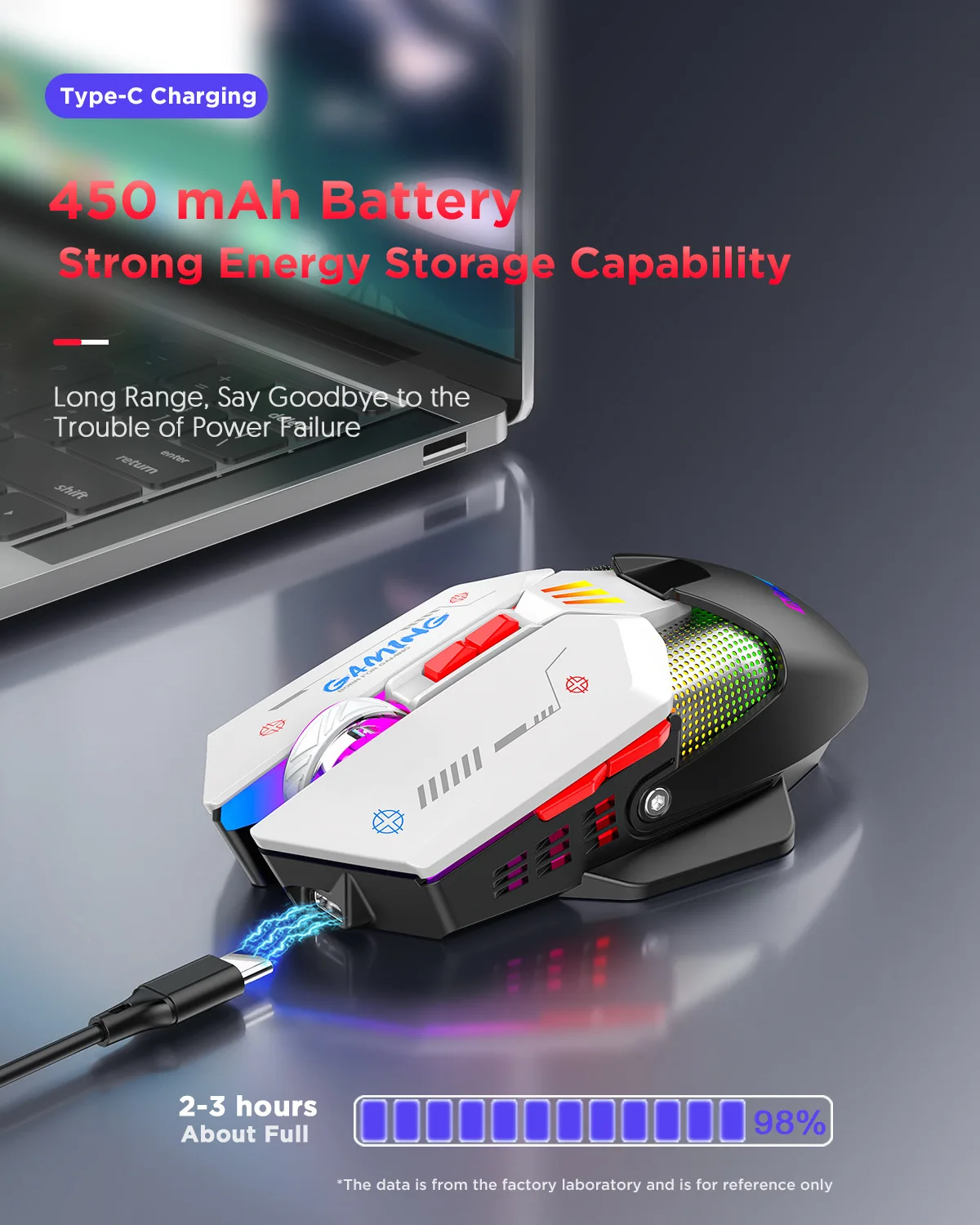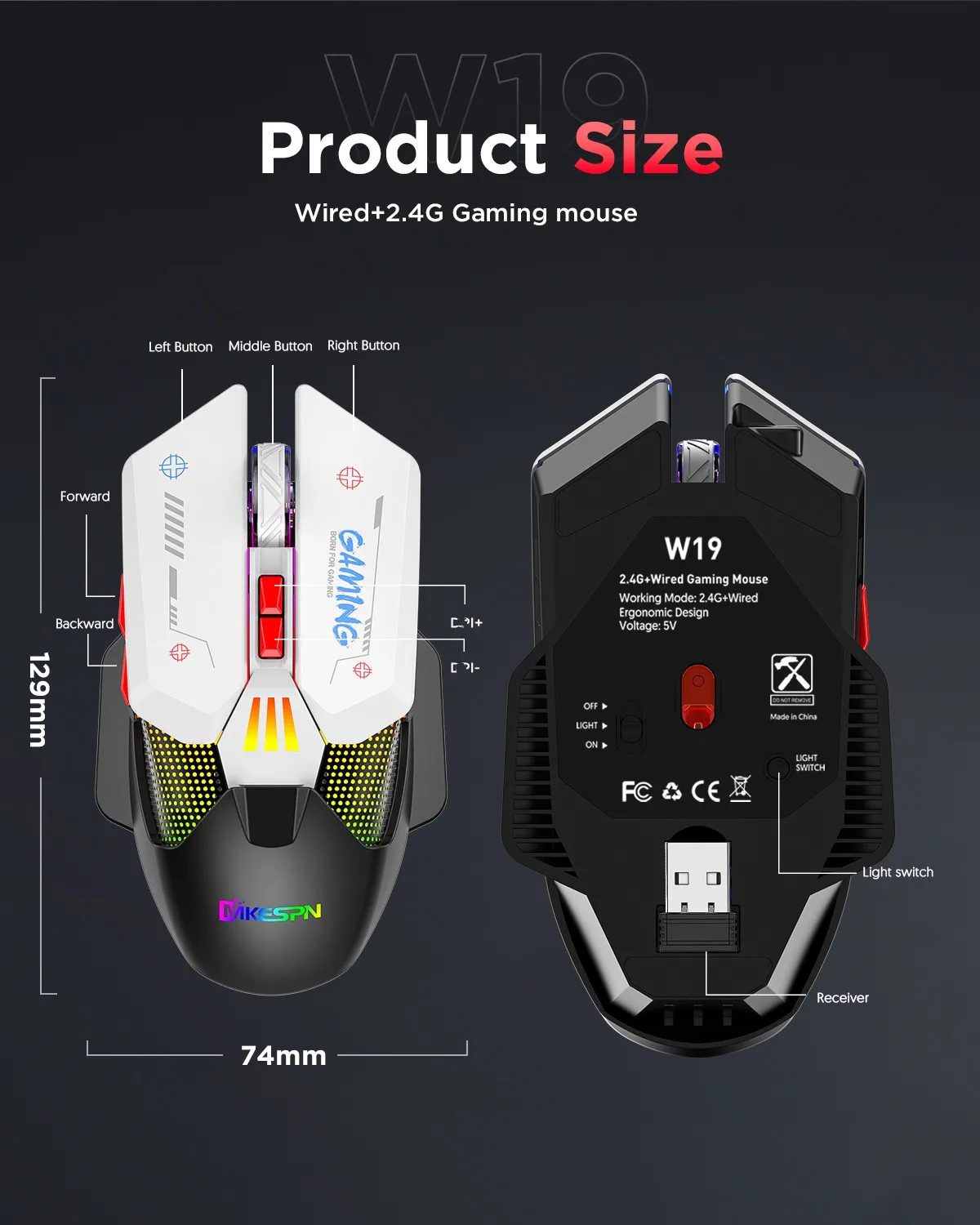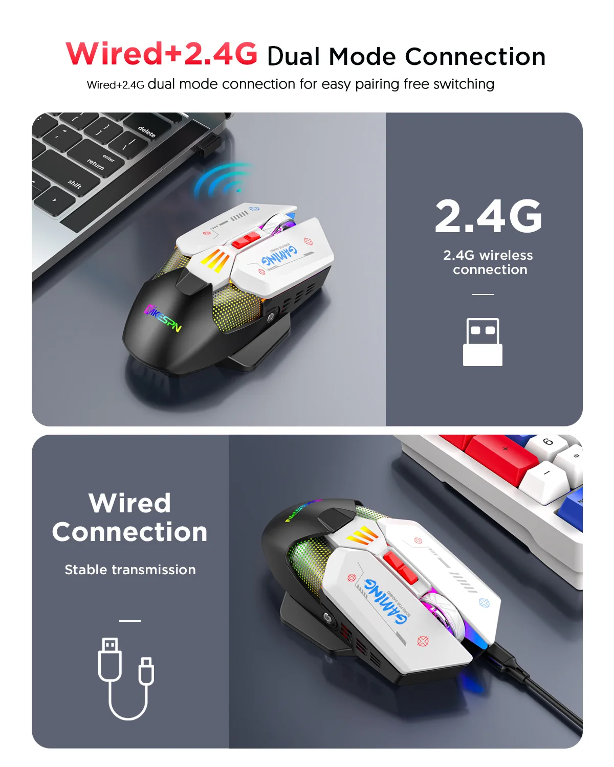Ergonomic Wireless Programmable Gaming Mouse Wired 2.4G Dual Mode RGB Backlit Gamer Mouse for PC Laptop/Desktop