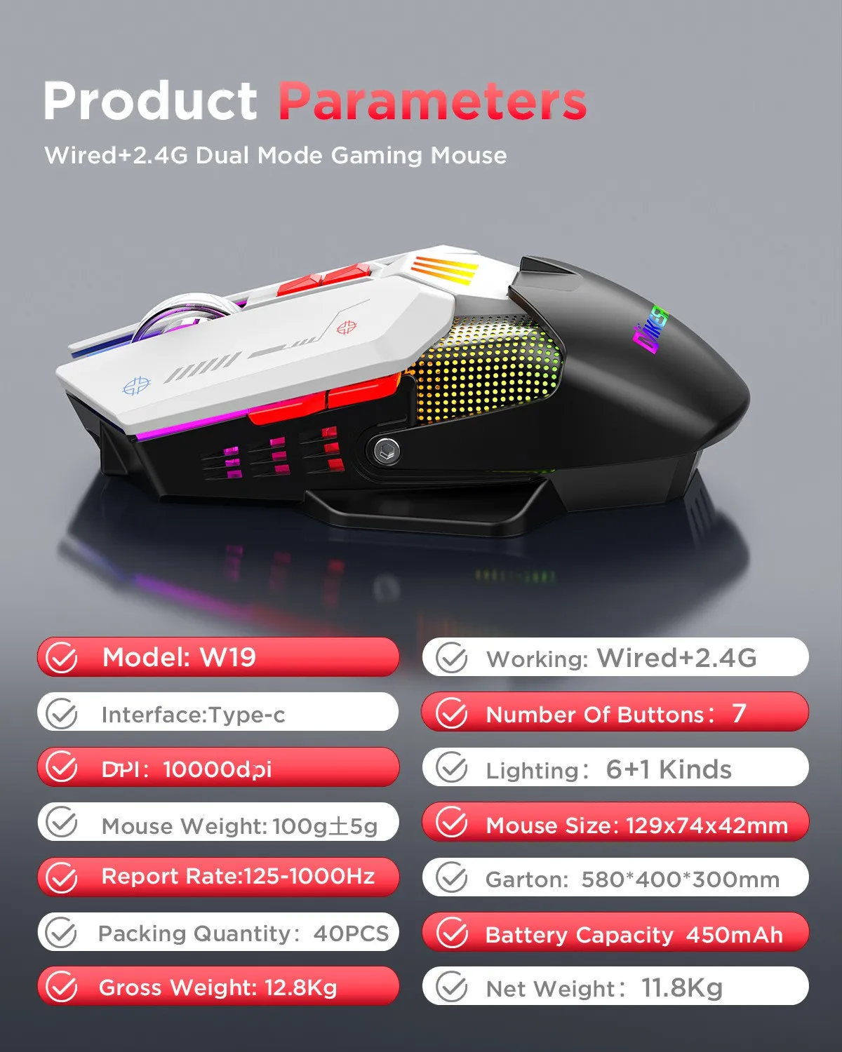 Ergonomic Wireless Gaming Mouse, 10000 D--PI Wired 2.4G Dual Mode Connection RGB Backlit Gamer Mouse For PC Laptop/Desktop |