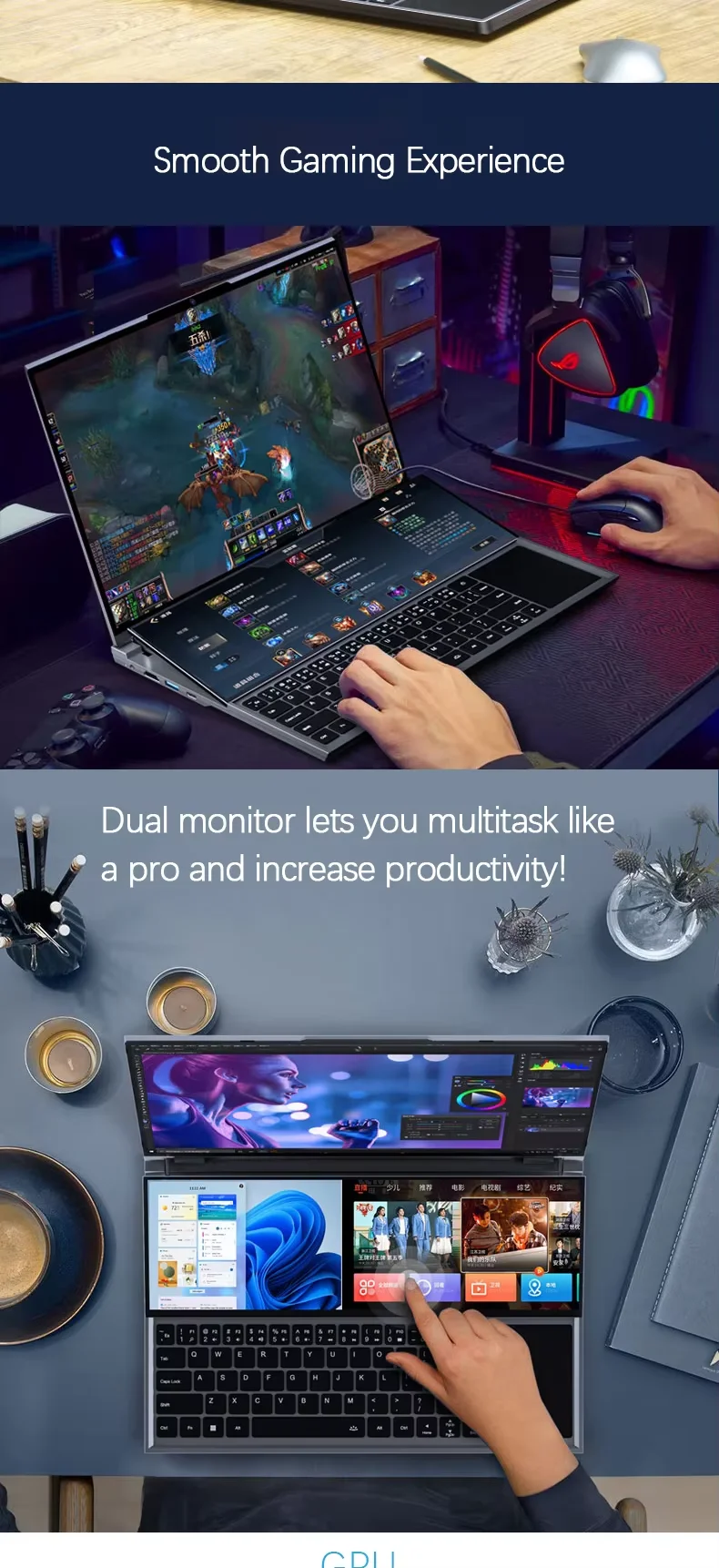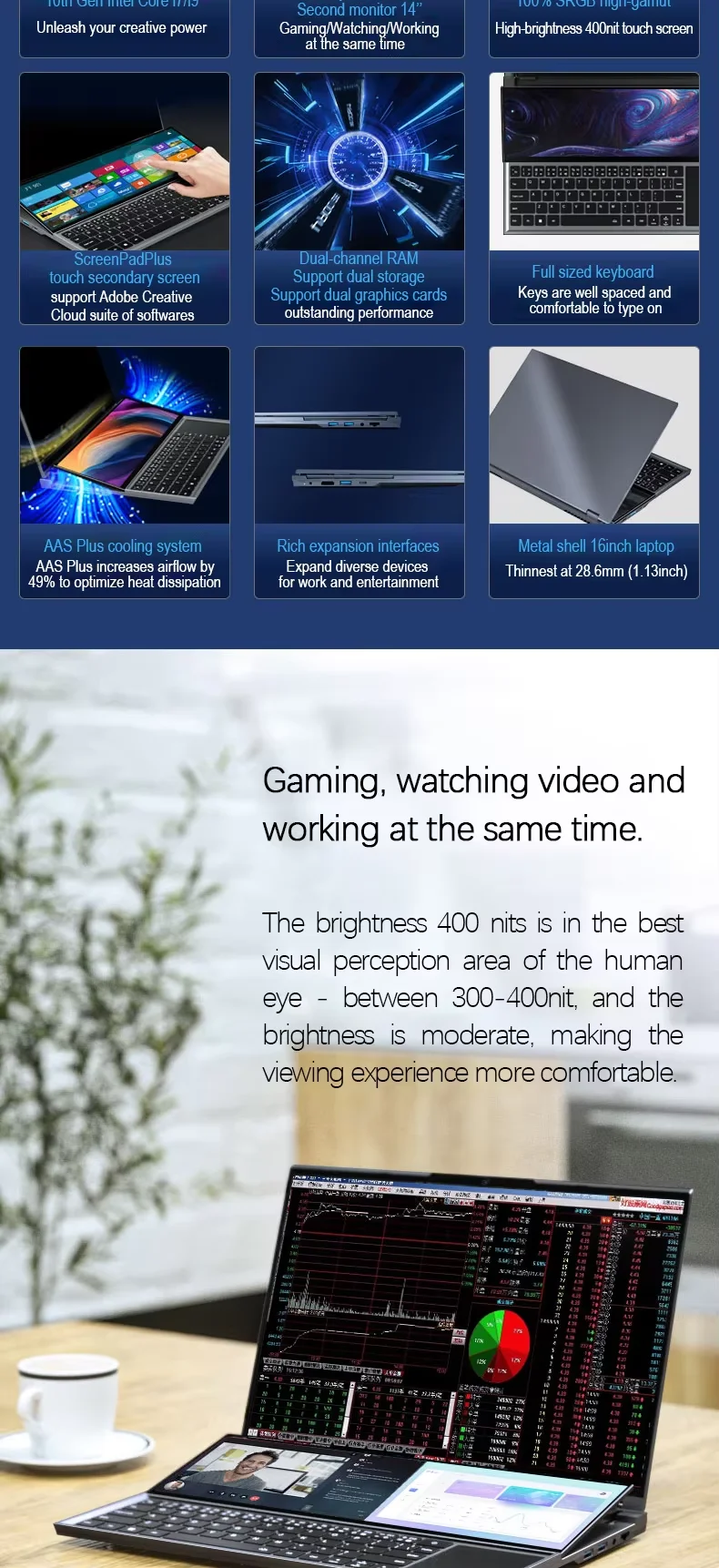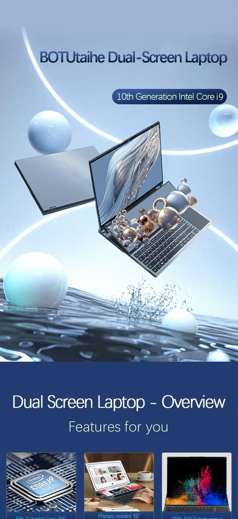 I7 Gaming Laptop 16" +14" FHD Dual Screen Dual-Monitor 16GB DDR4 1TB SSD Win11 Computer Office Business Laptops Intel Core I7 I9
