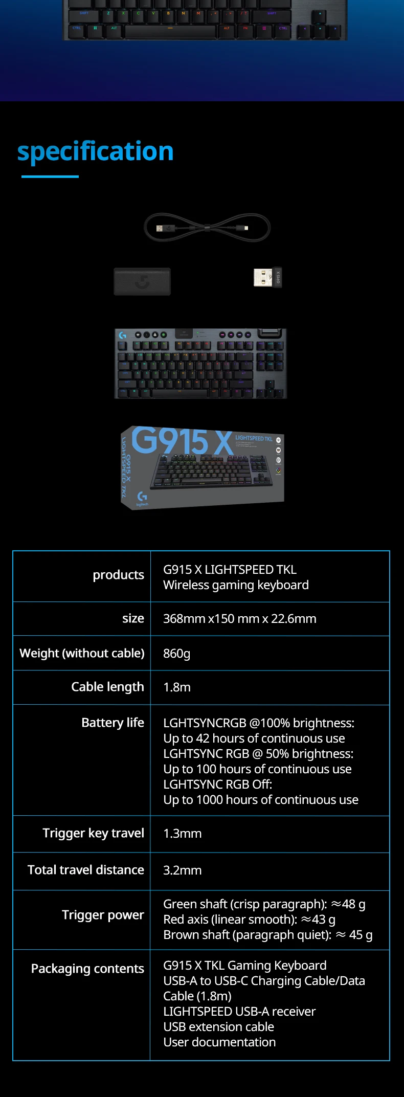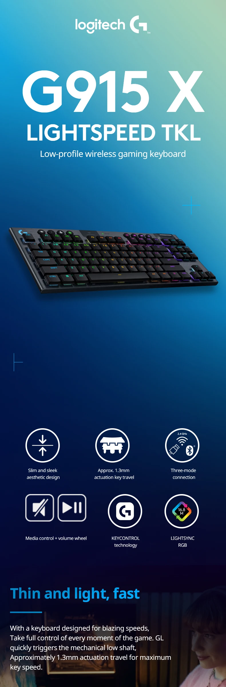 Logitech G915X TKL wireless ultra-thin mechanical keyboard