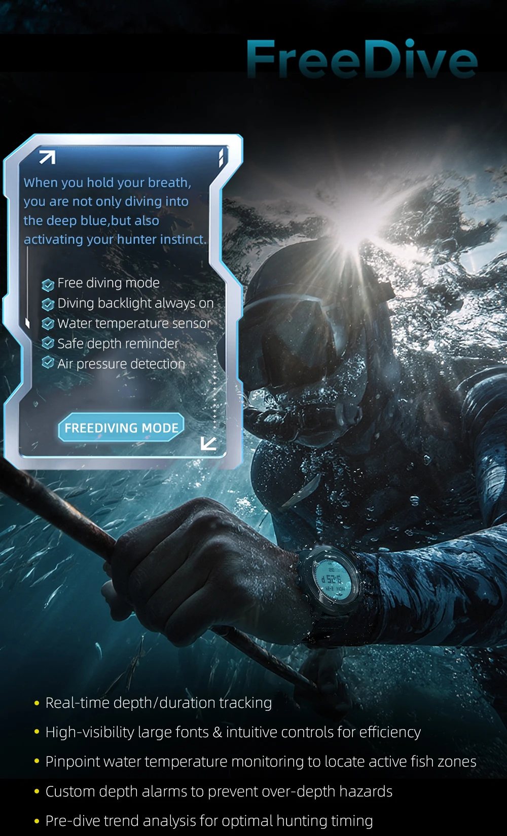 Feature: Steps Tracker,Calorie Counter,Back Light,DIVER,Alarm,Week Display,Temperature Measurement,Pressure Measurement