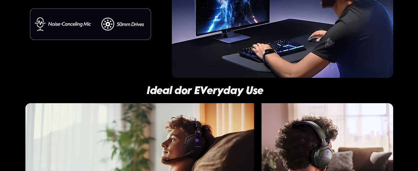 Immersive Sound Sync for Competitive Edge: Equipped with a 50mm composite diaphragm driver, this headset delivers immersive 3D surround sound—command the explosive audio of RPG epics and pinpoint tactical footsteps in FPS battles. Powered by a proprietary wireless chip, achieve seamless audio-video synchronization for true-to-life immersion