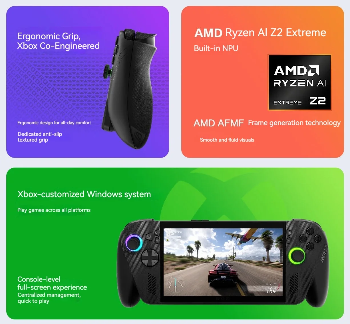 ROG XBOX ALLY X 7'' Handheld With Windows11 Ryzen AI Z2 Extreme 24GB+1TB SSD 500nits Support VRR Variable Refresh Rate Console