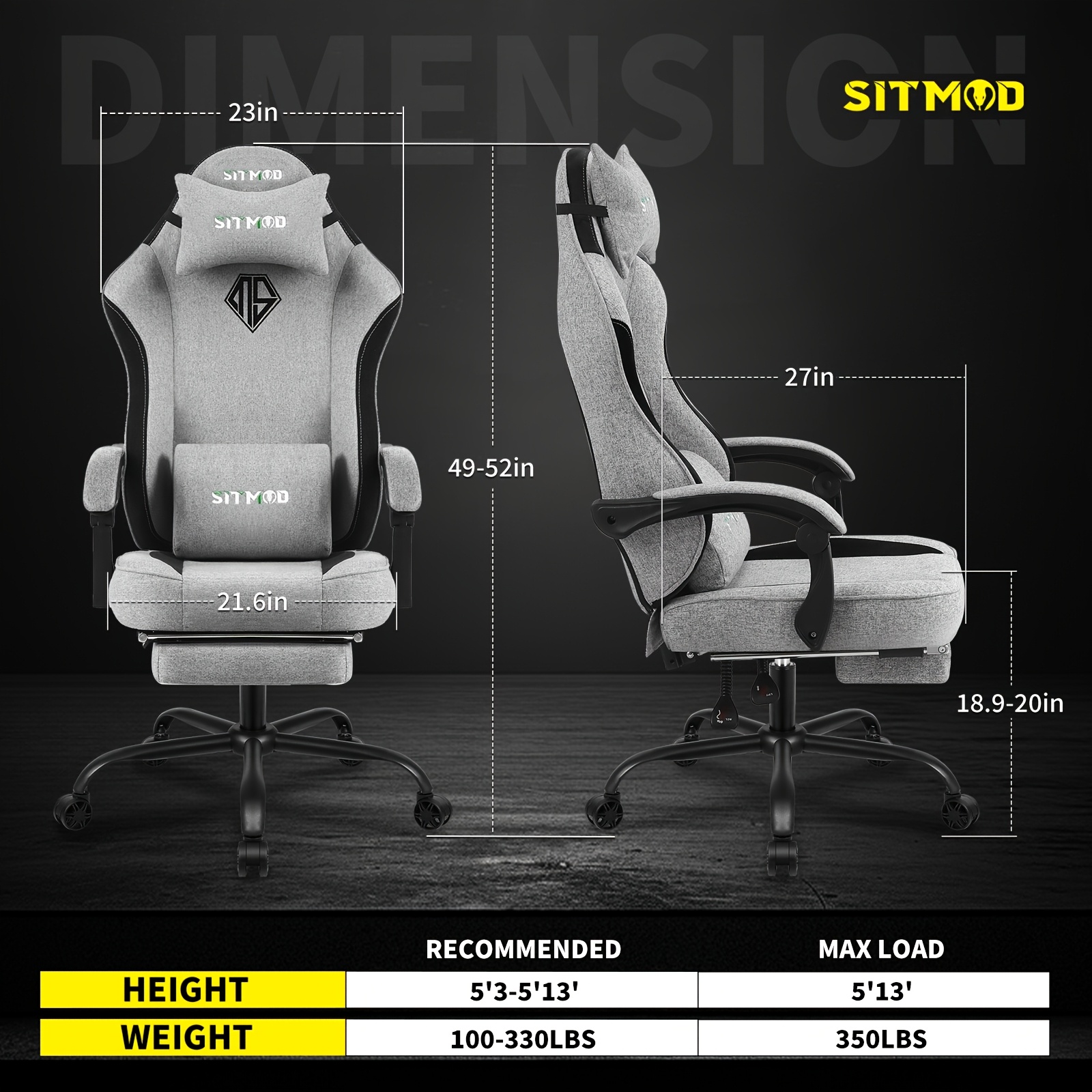 SITMOD Gaming Chairs For Adults With Footrest-Computer Ergonomic Video Game Chair-Backrest And Seat Height Adjustable Swivel Task Chair With Headrest And Lumbar Support Fabric